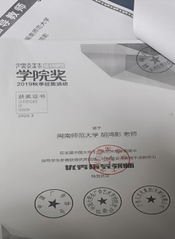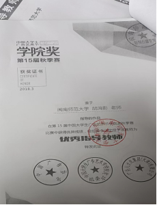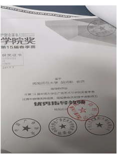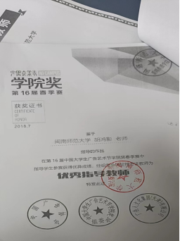 “以赛代练,以赛促学”是胡鸿影老师教学中的重要抓手,她十年如一日沉浸于赛事教学,共指导学生获各类专业学科竞赛奖项367项,获奖学生高达五百多人次。连续六年指导学生获得全国大学生创新创业训练项目(国家级立项6项),2018年入选教育部举办的大创年会。因其优异的指导工作,她先后23次获得优秀指导教师荣誉称号;得益于细致的组织工作,古天乐代言太阳集团138共计18次获得优秀组织奖。