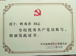 胡鸿影同志入党二十余年,始终牢记党的宗旨,坚守教育初心,扎根教育教学一线二十年,兢兢业业,秉持着“用心教书、以爱育人”的教育初心,在思想政治教育、人才培养、专业建设、产学研用开发等方面不断深耕,获得了丰硕的成果,体现了一名基层教师党员教书育人的热血和情怀。