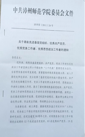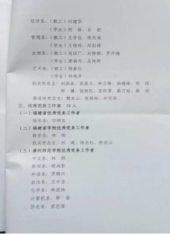 (“福建省优秀教育工作者”“巾帼建功”“福建省高校优秀辅导员”)