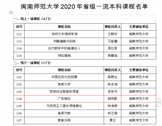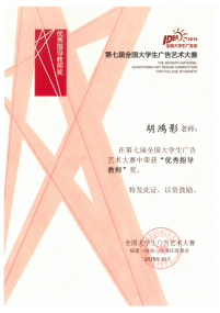 作为广告学专业负责人,胡鸿影老师全身心投入专业建设。初创期仅有4位专任教师的广告学专业,在她的带领下,持续不断积累成果,逐渐发展壮大。获得福建省创新创业改革试点专业,建成两门省级一流课程。教师团队共指导学科竞赛获奖 1129 项,获得优秀指导教师称号 50 人次,教师主持教研项目17项,各类教学竞赛获奖13人次。相关教学成效得到学习强国、各类媒体的多次报道。