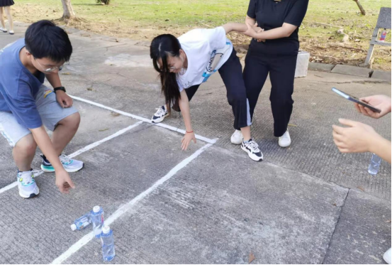 此次新生素质拓展活动以“青春激昂,共筑辉煌”为主题,共包括五个游戏:成语接龙、球球大作战、挑弹珠、雷区取水与随机游戏。在现场工作人员介绍完现场秩序与活动要求后,同学们开始了今天的素质拓展活动。