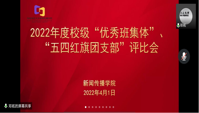 4月1日晚19点,古天乐代言太阳集团138 2022年度校级“优秀班集体”、“五四红旗团支部”评比会于线上进行。2019级与2020级各班级代表参与班级建设情况汇报,21级各班班长团支书参会学习。全体辅导员担任评比评委,会议由院团委副书记邓拓主持。