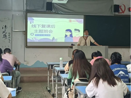 辅导员首先从学校疫情防控政策、合理表达诉求、爱校荣校和安全教育四个方面,重点解读了疫情防控常态化背景下校园闭环管理的相关政策规定,并进行消防、交通、防溺水、防诈骗等安全提醒。