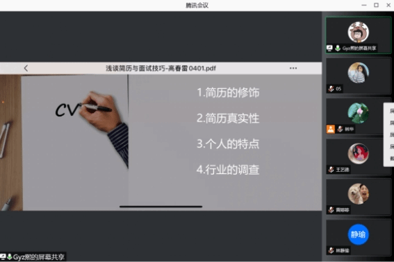 高春雷分享的主题是“简历制作与面试技巧”,结合自己的工作经历和择业历程,给同学讲解了在简历制作过程和面试环节中的一些注意事项。在简历准备方面,首先,简历应真实简洁地突出核心信息,如校园活动经历、社会实践经历。其次,需要了解用人单位需求,并且根据自身情况呈现与招聘单位的高匹配度。在谈到面试注意事项时,他向同学们介绍了常见的两种面试形式——压力性面试和非压力性面试,他特别指出在面对压力性面试时,同学们应自信大方,从容面对,语言应有一定的逻辑性,注意形象和保持微笑等