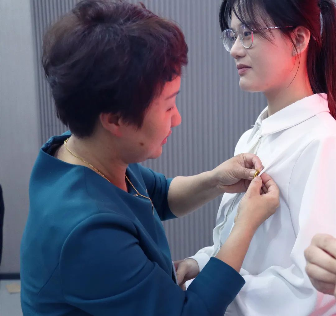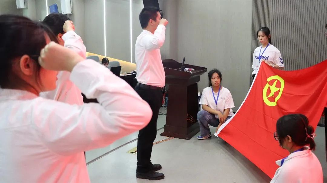 随后,举行了2022年新发展团员入团仪式。方琼为全体新团员佩戴团徽并颁发《团员证》。六名新团员在辅导员庄培勋的带领下,面向团旗庄严宣誓。