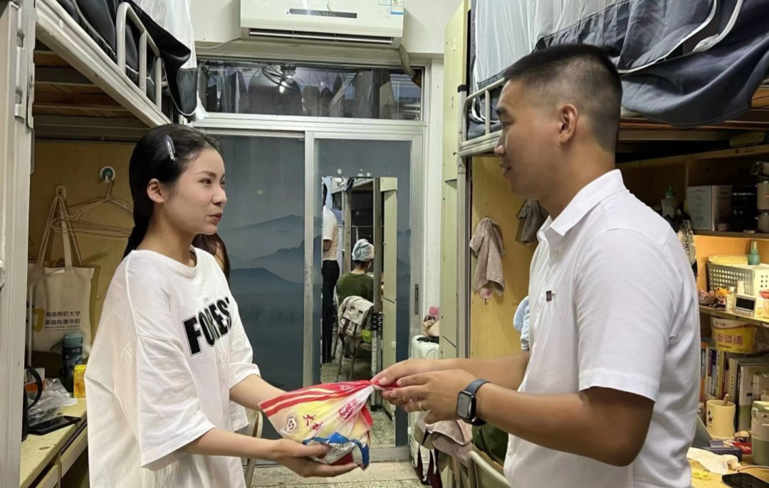 星月灿烂,陪伴相守。座谈会结束后,陈建漳带领各年级辅导员及2023级班主任前往学生宿舍,向全体在校生送上金秋时节具有独特闽南特色的节日礼物——柚子,并送上节日祝福。同学们纷纷表示,学院的暖心关怀让大家感受到了中秋佳节浓浓的暖意,增强了大家的归属感,留下了温情美好的回忆。
