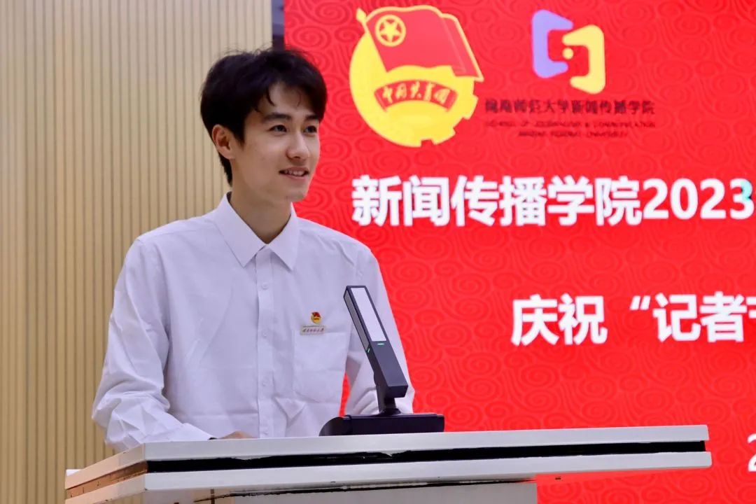 颁奖结束后,2022年院“青马工程”培训班优秀学员代表、2022级广告2班杜嘉梁同学代表上一期学员发言,分享一年来的学习收获。他鼓励新学员们要怀抱梦想又要脚踏实地,要敢想敢为又要善作善成。