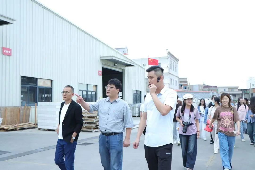 随后,学院师生前往泉州市惠安县,来到了泉州市长兴化工材料有限公司。同学们首先参观了统艺仿石漆展厅,在园区负责人的介绍下,了解了统艺的发展历程、产品研发与技术等内容。
