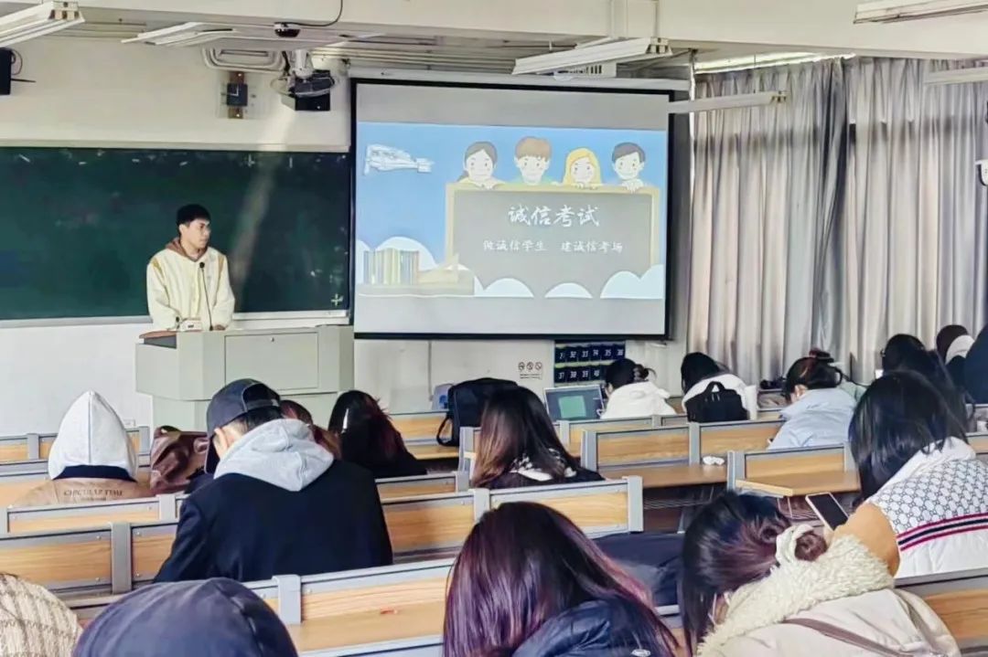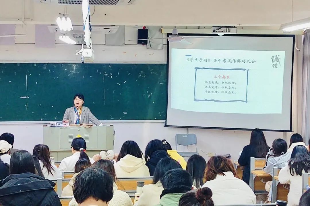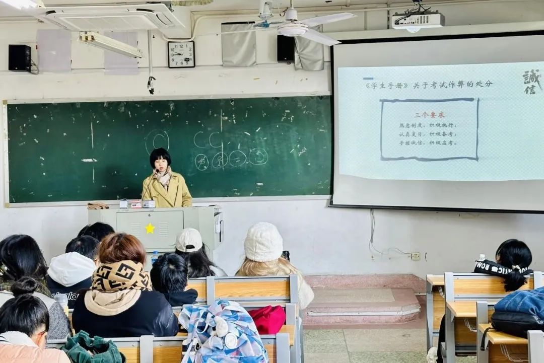 紧接着,各辅导员组织全体同学认真学习《国家教育考试违规处理办法》、《古天乐代言太阳集团138违纪处分规定》等规章制度,鼓励大家发扬诚信考试的优良作风。会上,各辅导员还就交通安全、防诈骗、宿舍消防安全等内容开展教育。