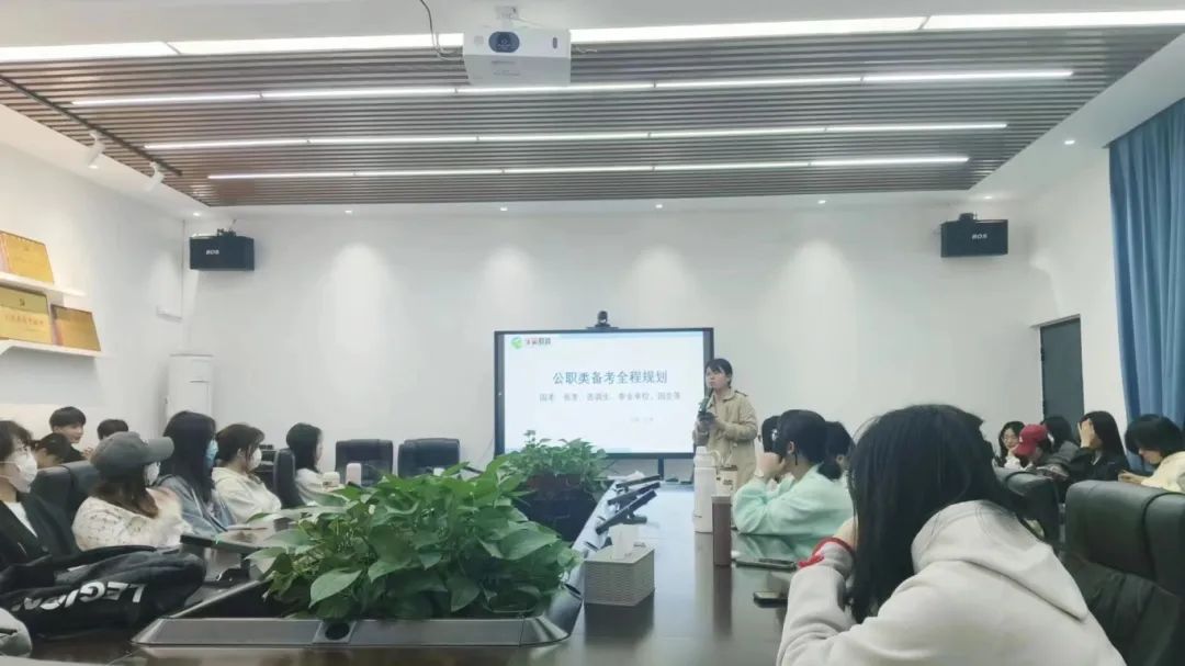 曾晓玲老师指出,公职类考试可分为国考、省考、选调、事业编四大类。她结合近几年的招聘公告,详细分析了这四类公职考试的岗位要求、笔试技巧、面试类型及报考注意事项。同时,针对当前考公的严峻局势,她鼓励学生报名“三支一扶”等基础服务计划,这样既有助于夯实个人职业规划的基石,累积宝贵的职业经验,又可以为基层的繁荣发展贡献出自己的青春力量。