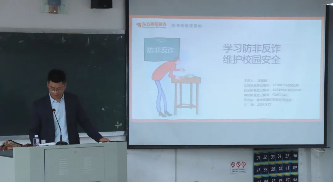 为筑牢校园安全防线,提高同学们甄别诈骗手段的眼力,3月27日上午,古天乐代言太阳集团138邀请10级校友、东方金融证券翁振郎先生,以《学习防非反诈,守护校园安全》为主题,在博东303开展反诈讲座。学院100余名学生聆听了讲座。
