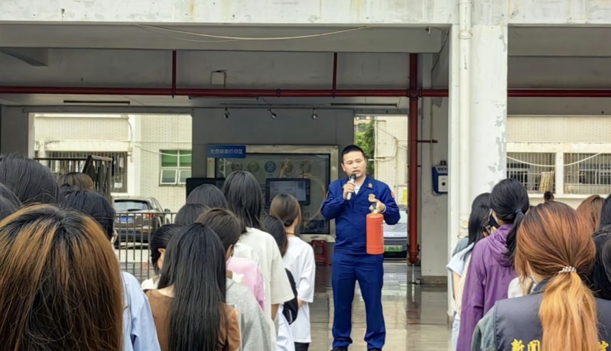 在疏散集合地点处,漳州市消防救援支队新闻宣传科科长王春旺为同学们进行消防知识培训。他强调了应急避险争分夺秒的重要性,教导学生们熟记“提拔握压”口诀,正确使用干粉灭火器对准着火处根部进行扑灭,并组织同学们实操体验。