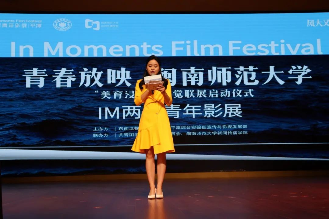 活动伊始,通过两段VCR,主持人向观众介绍了IM两岸青年影展(In Moments Film Festival,缩写:IMFF)。IM两岸青年影展是以扶持全球高校华人青年影视创作力量为目标,集短片评比、论坛、展映等于一体的专业影像节展,倡导青年创作人以影像为手段,呈现多元时代下的社会发展。自2020年起,IM两岸青年影展已成功举办了3届,是目前两岸之间规模最大的青年影像交流活动。影展已走进逾200所院校,放映近300场,足迹遍布国内、海外及港澳台地区逾百所高校。本次在我校的展映活动正是其巡展活动其中一站。