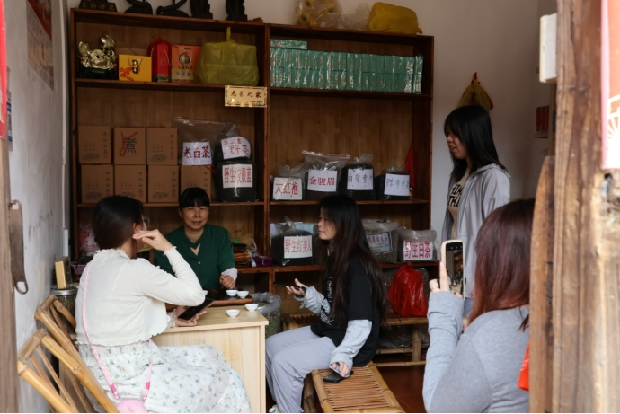 18日上午,师生一行抵达南靖土楼,课程的各个实践小组有序地开展小组的调研工作,充分围绕“年轻化视角看土楼”的基本思路以及为南靖土楼制定营销推广方案的实践重点开展工作。在调研过程中,同学们将课堂上的理论知识灵活运用到实践活动中,考察地形地貌对南靖土楼建筑布局的影响、了解南靖土楼的分布情况、调查游客的构成情况和结构特点等。通过各种类型的调研,为课程的公关活动策划项目搜集一手资料。同时,同学们也积极与当地居民进行交流,了解当地特色美食、手工艺品以及土楼文化等,更加深入地掌握有关南靖土楼的历史渊源和文化故事,并从中汲取创作灵感和思路。