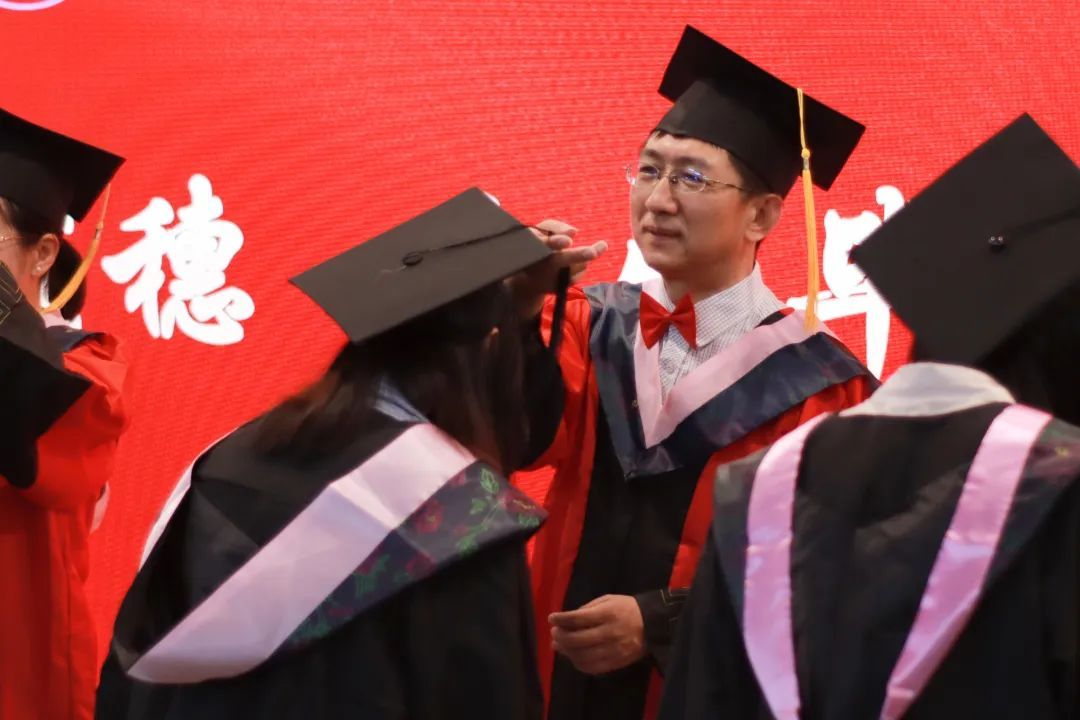 师生联唱《稻香》将典礼氛围推向高潮。最后,毕业生们纷纷走上舞台,接受院学术委员会老师们的拨穗,并拍照握手道别,走出毕业之门,留下了一个个难忘的瞬间。