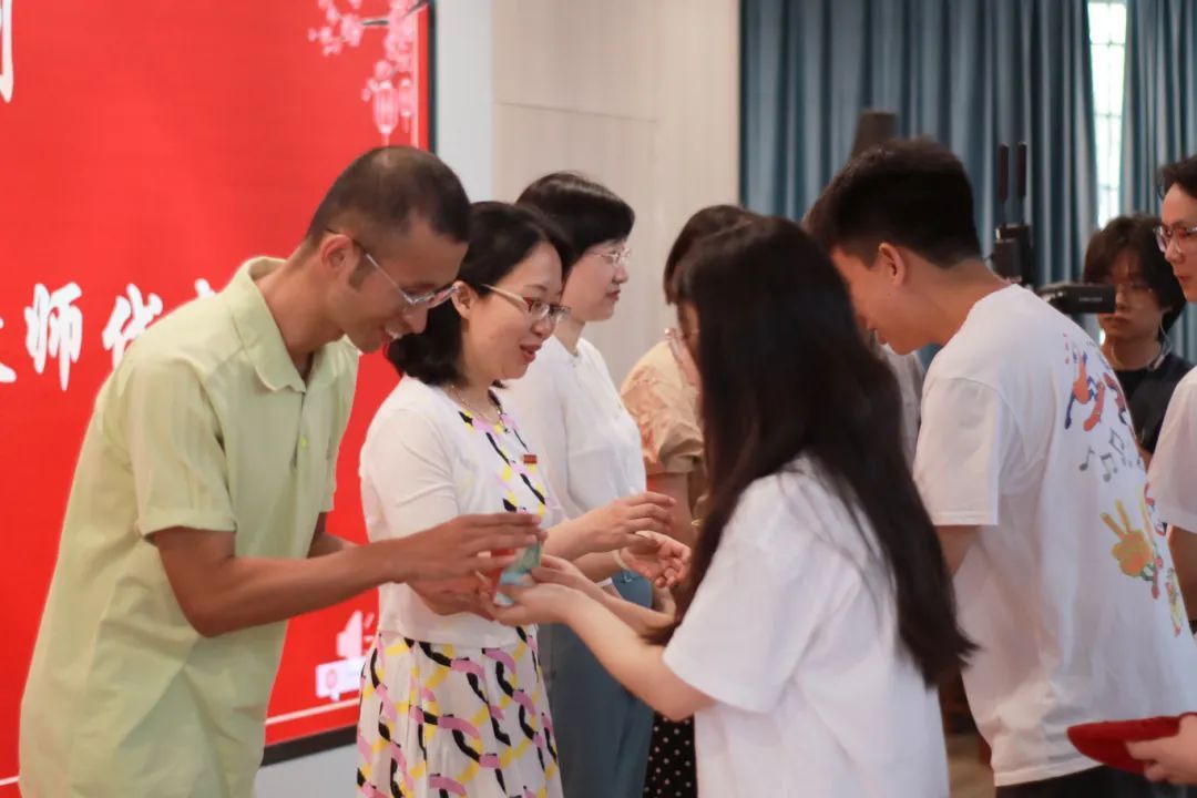 情不自胜,借花行谢。在感恩仪式上,学生代表为家长代表献上了鲜花,感谢他们多年来的辛勤付出和无私奉献;同时,学生代表还为教师代表奉上了热茶,表达了对老师们的敬意和感激之情。这一环节让在场的每一个人都感受到了浓浓的亲情与师生情。