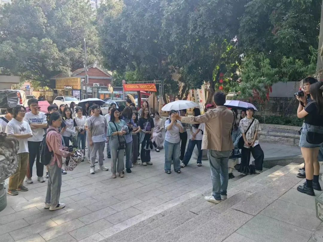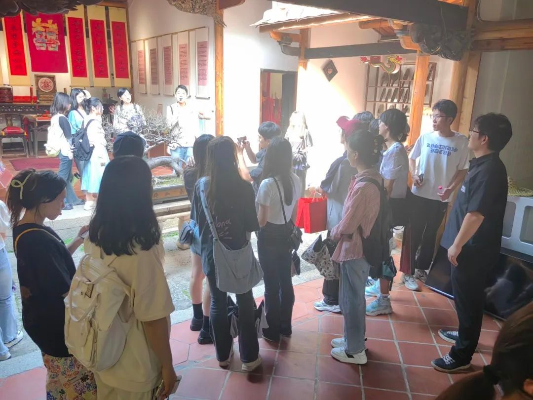 随后,同学们来到福建省“乡建乡创”样板村后溪镇后溪村。作为海峡两岸乡村振兴合作示范基地,后溪村通过吸引台湾青年前来创业,打造出独具闽台特色的婚俗体验馆、酒铺、药铺及黑猫两岸青年文旅基地等文创项目,广泛吸引游客。
