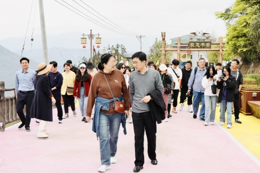 在官畲村,师生们走步道、观村貌、听讲解,深入了解畲族的发展历程、风俗习惯,欣赏了畲族的传统舞蹈——七彩凤舞,近距离感受畲族的传统文化,领略美丽畲乡的人文风情,感受蕴含其中的民族共同体情感。