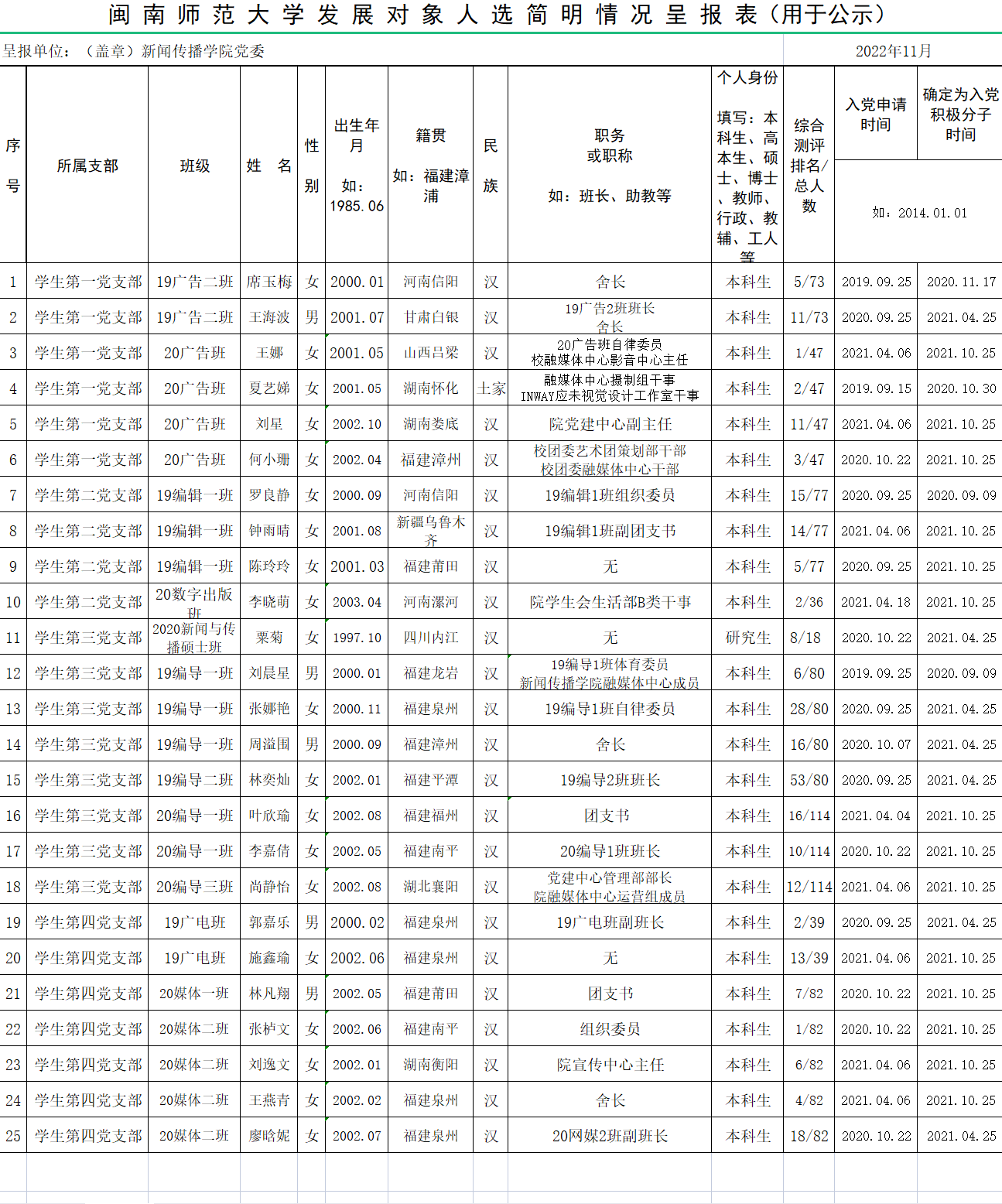 关于对2022年11月拟确定为党员发展对象人选公示的公告