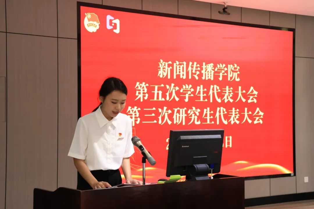 院学生会主席团成员林文发代表第四届学生委员会作了题为《挥洒青春豪情,共绘发展蓝图》的工作报告,院研究生会主席团成员吴欣代表第二届研究生委员会作了题为《且进且悟,实干有为》的工作报告。