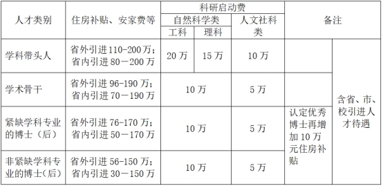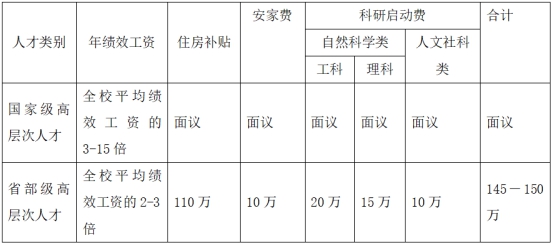 说明:在世界知名刊物发表论文,或主持国家级重点课题,或主持一千万以上到帐经费社会服务类项目等的优秀人才,可参照高层次人才待遇“一人一议”。