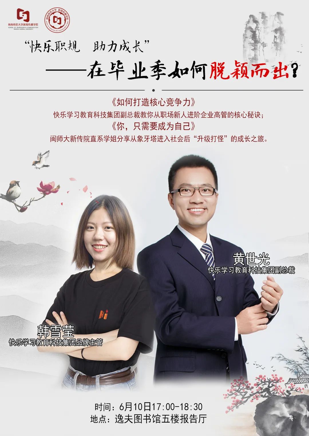 主讲内容:《如何打造核心竞争力》快乐学习教育科技集团副总裁教你从职场新人进阶企业高管的核心秘诀。