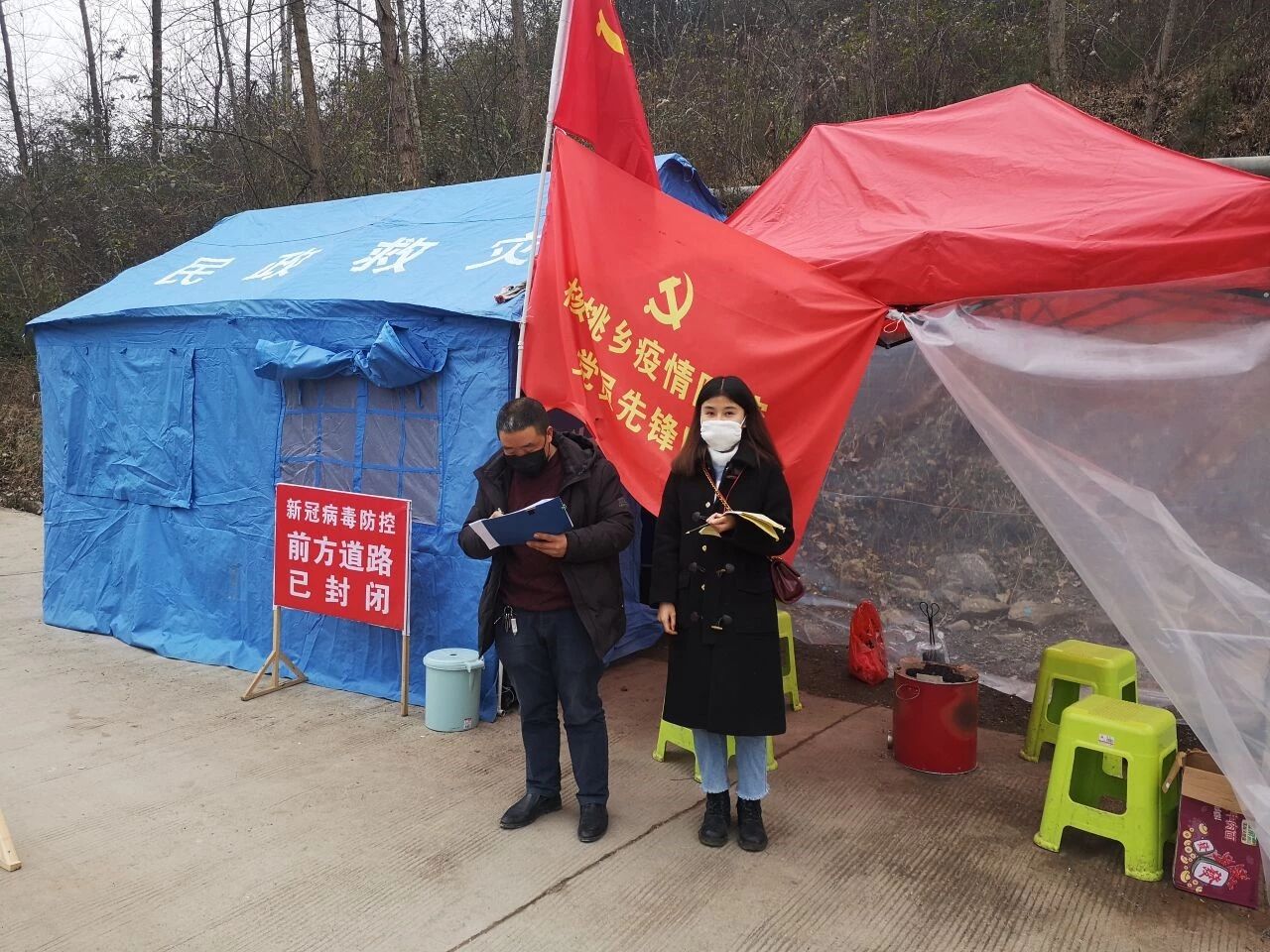 为了响应国家政策,核桃村村委会自行安排人员在相应地点设置检查点,对道路来往人员进行了认真的检查处理,防疫战疫卡点检查小组成员主要由村委会与村警工作人员以及不多的志愿者组成,一天24小时安排值班人员,考虑到志愿者身份的特殊性,并未把她们安排到夜间小组,而有安排到夜班的人就意味着可能24小时都不能休息。当志愿者的时间并不长,从站点检查到上门排查,她很明显地能感受到基层民众对国家的信任与依赖,基层工作人员为了人民的健康着想,无时无刻奔赴在第一线。