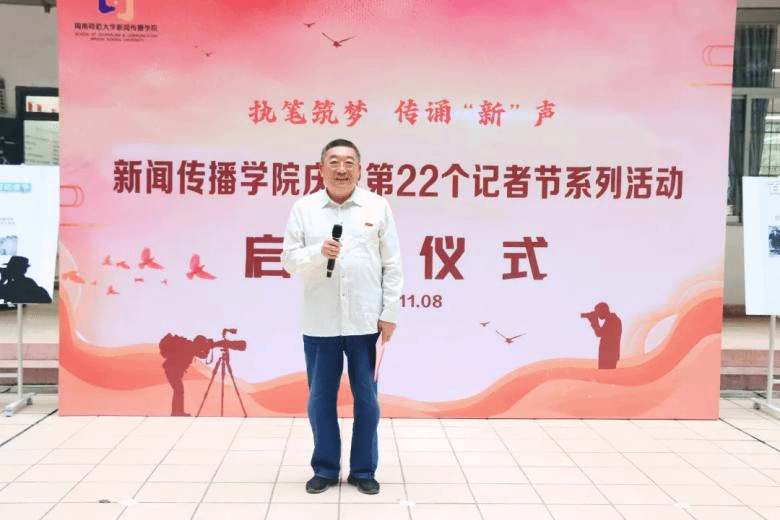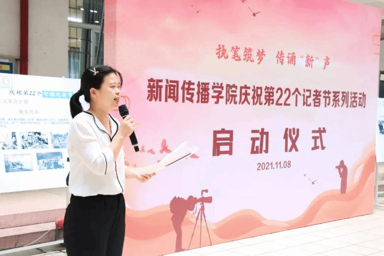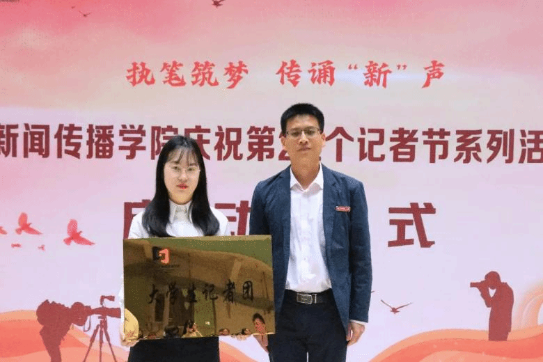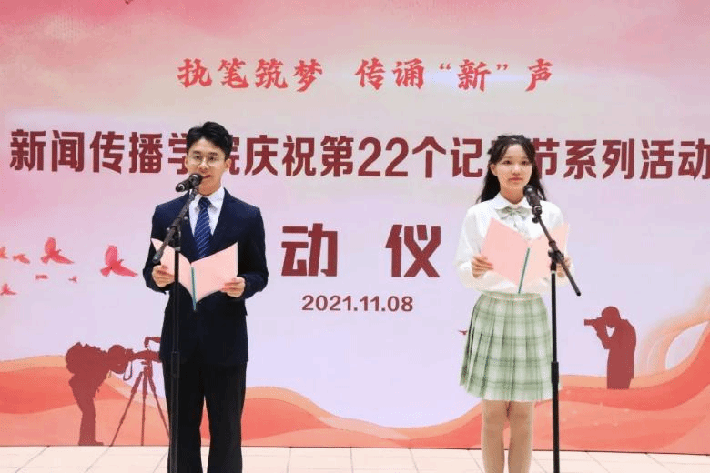 启动仪式在袁媛、苏伟峰两位同学的诗歌朗诵《记者·英雄》中拉开了序幕。两位同学饱含深情地讲述着新闻人一次次地俯身大地的故事,从街道到田野,从抗洪救灾现场到抗击疫情一线,他们用笔和镜头记录下一个个鲜活生动的中国故事,描绘出这个时代波澜壮阔的奋斗图景。
