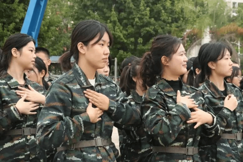 我们一件件深绿的军装,是教官们汗水的见证者,一遍遍耐心的教导是教官对学生们的温和敦促。