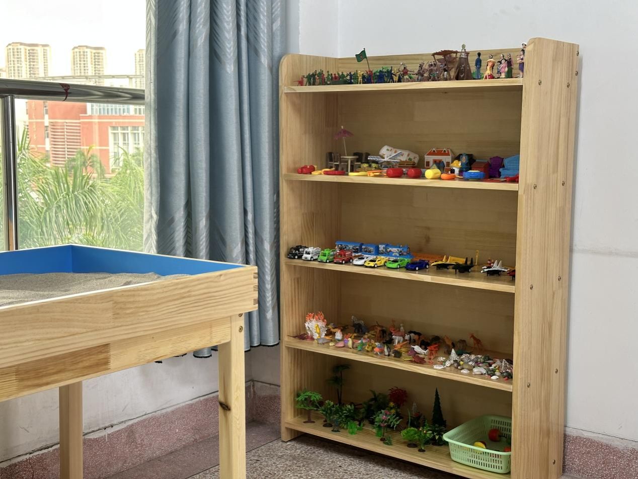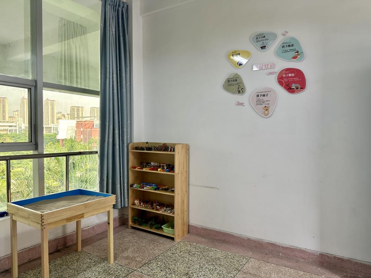 而沙盘区则是一片小小的天地。同学们可以通过摆放小物件,在沙盘上构建出内心世界的场景,释放压力,寻找平静。沙盘游戏可以用于儿童、成人,对有自闭症、强迫症、社交困惑、躯体化等心理障碍的人提供心理辅导。对一般情绪问题、行为问题、发展问题的治疗,也十分有效。可以提高自信心,完善自我性格,提高社交技巧,有效地宣泄消极情绪,释放压力等。