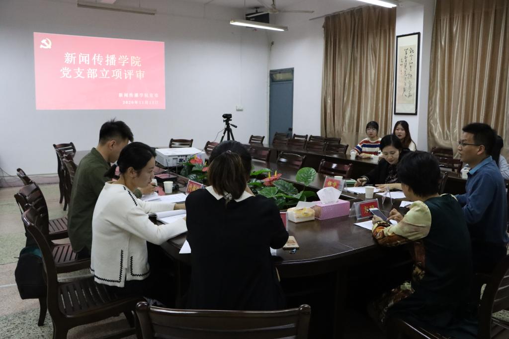 评审活动分为审阅立项申报材料和听取立项建设思路汇报两部分。经评审,教工第一党支部申报的《发挥融媒专业优势 提升服务地方能力》和学生第三党支部申报的《学好“四史”明方向 薪火相传再出发》两个支部立项,将作为学院推荐的申报项目,参加校级立项评审活动。