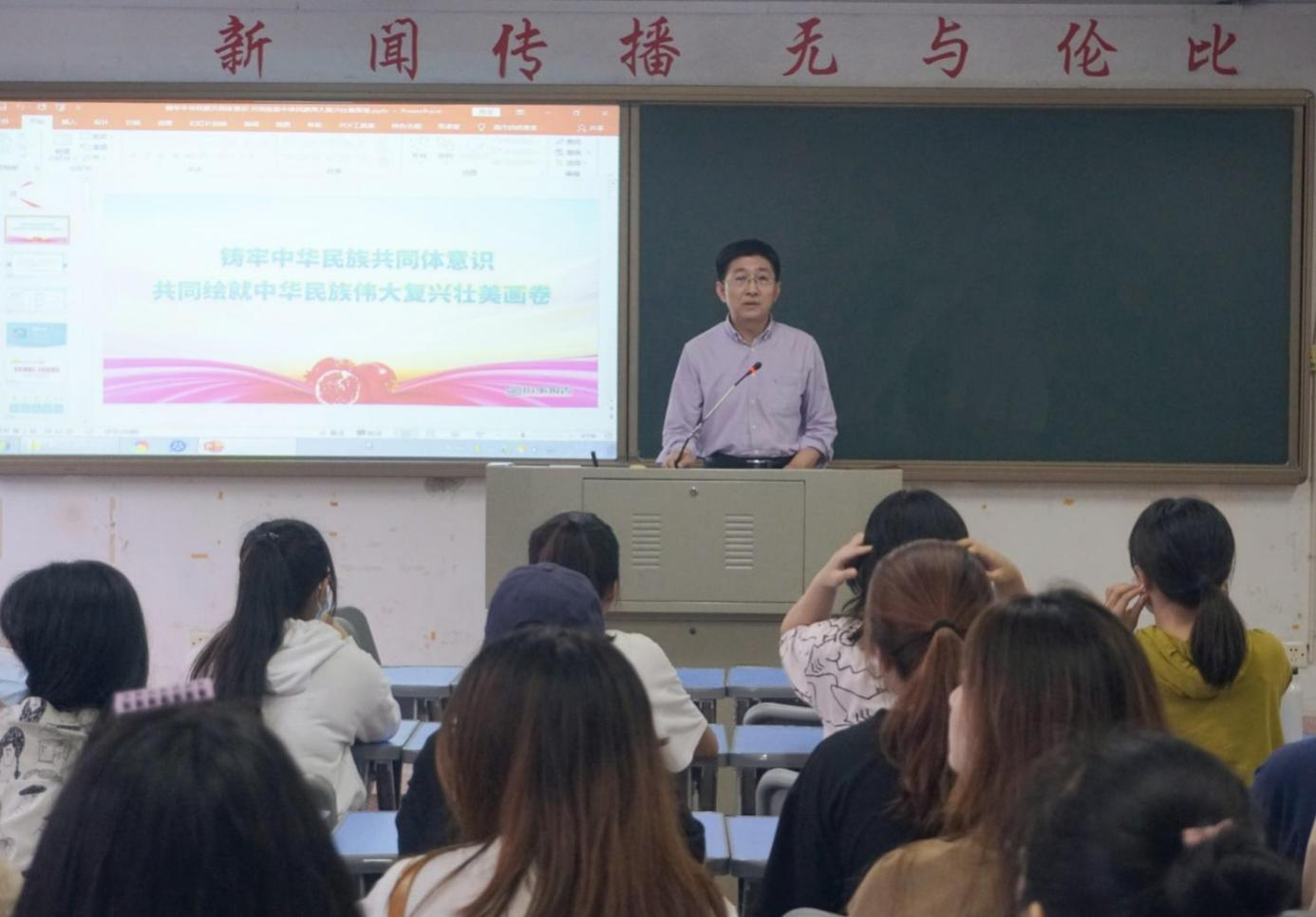 林大志引经据典、结合实际,带领同学们全面回顾了中华文明历史长河中全国各族人民共同奋斗的历程。不同民族在长期不断的融合与交流中,共同熔铸了以爱国主义为核心的伟大民族精神。作为新时代大学生,要从以下几个方面切实筑牢中华民族共同体意识。一是深刻把握中华民族多元一体的基本国情,增强文化认同。二是全面认识民族团结进步事业的伟大成就,提升民族凝聚力。三是推动新时代党的民族工作高质量发展,实现长远之治。