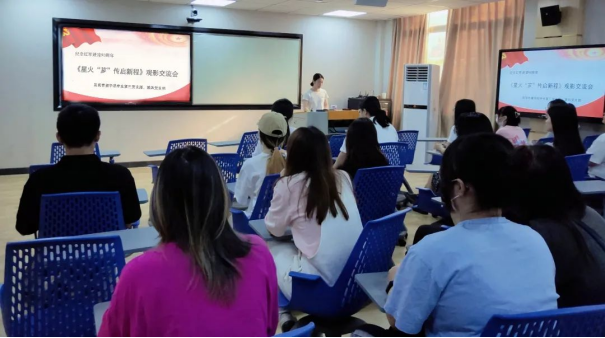 活动开始,学生第四党支部书记黄丽丽组织学生党员们一起学习观看由芗城融媒制作的纪念红军进漳90周年微视频《星火“芗”传启新程》,通过影像重温红军进漳时的辉煌历史,引导党员深刻理解红军攻克漳州的历史意义。观影后,党员们现场交流学习心得,两个党支部党员代表分别发言,一致表示作为漳州地区的大学生,红军在攻克漳州过程中攻坚克难、英勇斗争的精神激励我们以更加昂扬的姿态、更加饱满的热情投入到今后的学习工作当中去。随后学生第四党支部书记黄丽丽对党员们的发言进行总结,鼓励学生党员们从红军进漳历史中激发信仰、汲取力量,坚守初心使命,勇于担当作为。