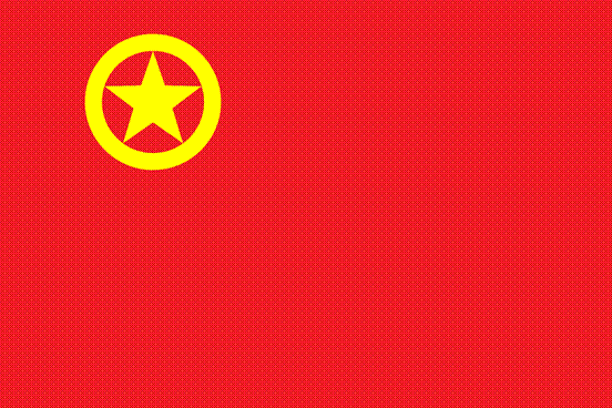 团旗的制作方法是黄圈围着的黄色五角星,缀在旗面左上方,制旗时,先将旗面对分为4个相等的长方形, 将左(它的反面为右)上角长方形上下分为12等份,再以左上角长方形中心点为圆心,3等份及4等份长为半径画两圆周,两圆周之间就是黄色圆圈。再在内圆周上定出5个等距离的点,其中一 点位于圆周正上方。将此5点中各相隔的两点相联成直线,此5直线之外轮廓线就是黄色五角星的外缘。