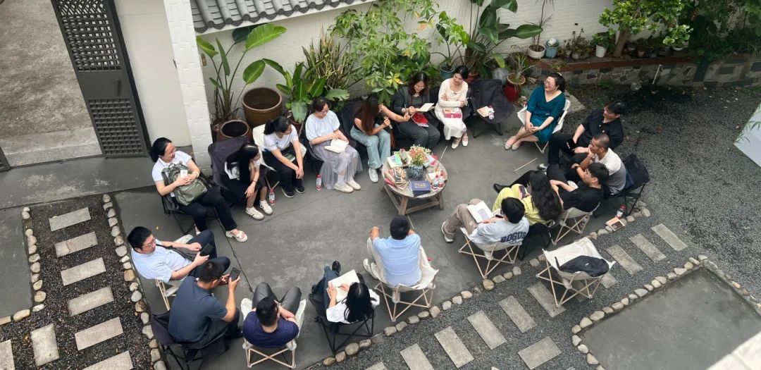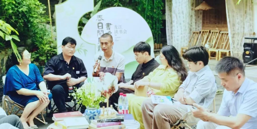 随后,在阿丹家古朴雅致的庭院里,党员同志们结合各自专业特色,围绕闽南历史文化、红色精神、生态文学等主题,和龙海书友以“一人一书一席话”的形式,交流并分享了自己喜爱的书籍:既有《新中国观感集》的历史镜鉴,也有《中国文化的精神》的哲学思辨;既有《唐诗光明顶》的现代性阐释,也有《设计诗》的创意性解构;既有《如何成为不完美主义者》的成长启示,也有《皮囊》的生命叙事……为增强互动性,活动还设置了“对话经典,党群共读”环节,党员教师和龙海读书会的书友们以书会友,交流工作经验、生活感悟。现场分享的多元视角和独特感悟,不但构建了立体化的阅读图谱,而且带来了深层次的精神愉悦。