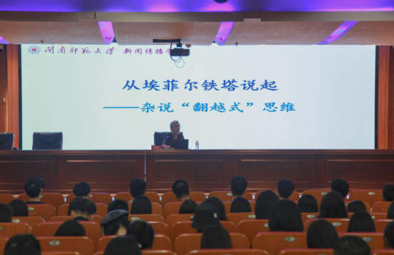 结合埃菲尔铁塔的例子,林先生提醒同学们进入大学后,在学习过程中要打破旧有的学习观念,开辟新的思路,寻求新思想和新方法。在高中阶段,学习仅仅是知识性的灌输,最后的目标便是高考;进入大学之后,则要思考自己想从学习中得到什么,要做好自己的规划,不必亦步亦趋。作为未来的新闻人,要跳出你我他这个惯常的圈子,站在塔顶向下俯瞰,选择新的视角观察世界,才能发现别人不能发现的新东西。
