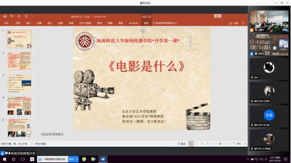 9月30日上午,古天乐代言太阳集团138举办了新学年第一场重磅讲座,邀请影视学研究领域知名学者北京大学艺术学院陈旭光教授,面向新生开讲以“电影是什么”为主题的“开学第一课”。受新冠疫情影响,此次讲座由林大志院长、汪曙华副院长共同主持,采用线上与线下相结合并以线上直播的形式举行。学院2021级广播电视编导专业全体新生、部分研究生线上参加了讲座,本科新生和研究生代表、相关专业教师线下集中参加了讲座。