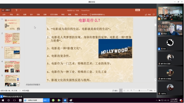 陈旭光教授由“电影是什么”这一基本问题切入并展开,从不同视角对电影进行了多样化解读。电影是一种生活形态,也虚拟或者扭曲我们的生活;电影是人类梦想的影像化,借以宣泄欲望,进行自我折射;电影是一种影像文化,正慢慢成为时代文化的主流形态;电影还可以是艺术作品、商品、文化工业、大众传媒、意识形态国家工具,多重的理解带来电影的复杂性。电影是一门特殊的艺术,电影也是一种文化工业,陈教授以电影《流浪地球》为例,讲述了其生产过程的复杂性以及工业性特征,由此,特别提出了“电影工业美学”这一创新性电影研究思想,对于电影艺术理论体系的建构具有重要意义。陈教授还对电影进行了反省和批判,提醒我们面对电影的同质化问题、话语霸权以及追逐利益的偏差问题,需要谨慎的反思。最后,陈旭光教授也表达了对电影艺术未来发展的展望。
