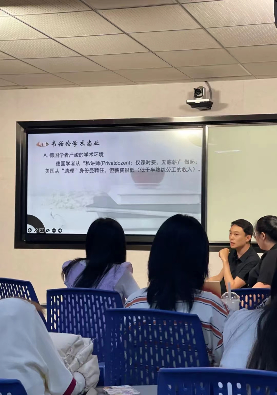 宁煜程老师为同学们“细读”了马克思·韦伯的《学术作为一种志业》,在讨论“学术是什么”的同时分析了当代国内的学术环境,最后从时空、学术工作内容、风险与价值4个方面总结了选择考研并从事学术研究的利弊。