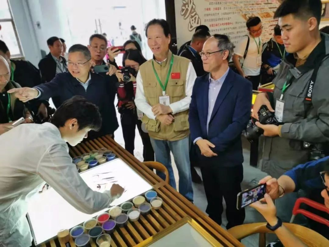 漳州永润文化创客小镇负责人、全国沙画艺术考评中心副主任严永德向采访团介绍