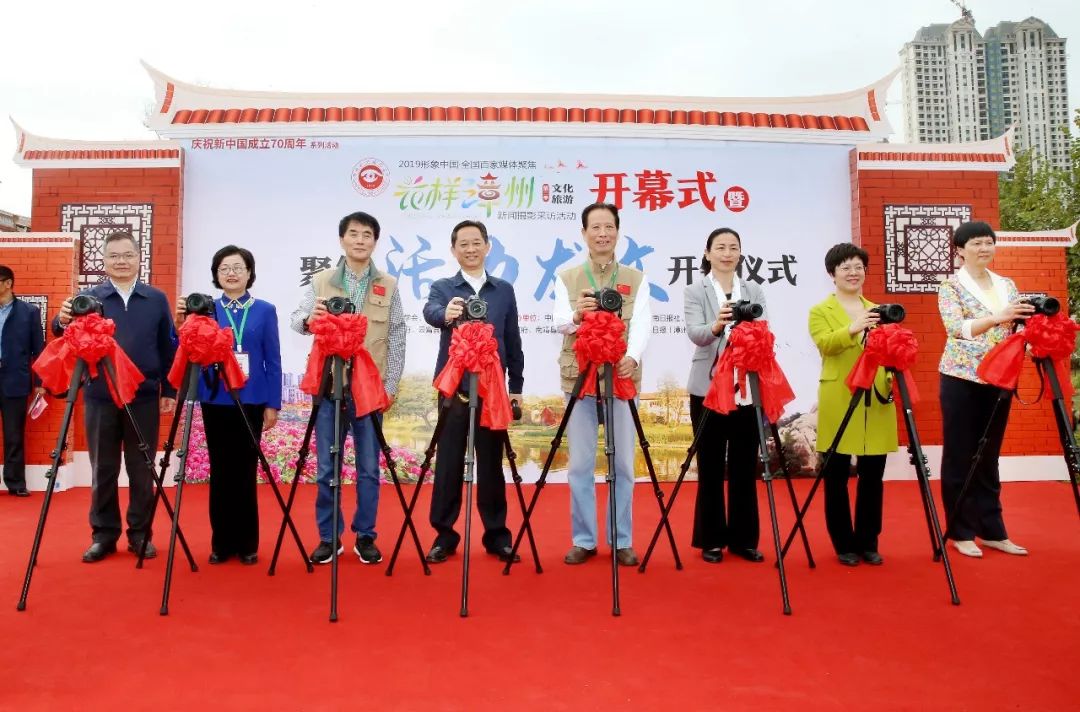 开镜仪式上,中国新闻摄影学会会长徐祖根,漳州市委常委、宣传部长刘伟泽,漳州市副市长吴卫红,中国新闻摄影学会会长助理、中国新闻摄影学会地市报分会会长郑石明,漳州市委宣传部副部长、闽南日报社社长陈惠贞,漳州市文化和旅游局局长林菁,闽南日报社总编辑叶明义,龙文区委常委、宣传部长汪清桦等领导和嘉宾共同启动开镜仪式照相机装置。