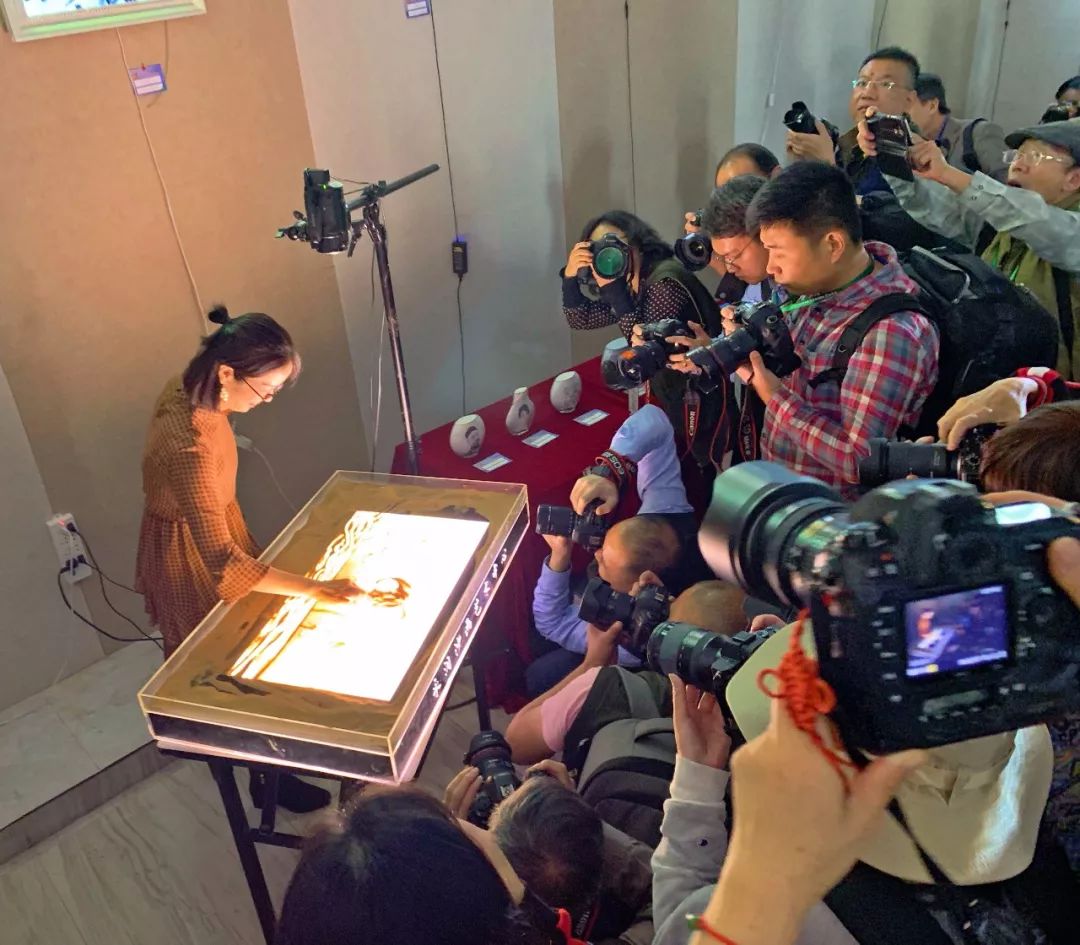 图为领导和嘉宾共同启动开镜仪式照相机装置。