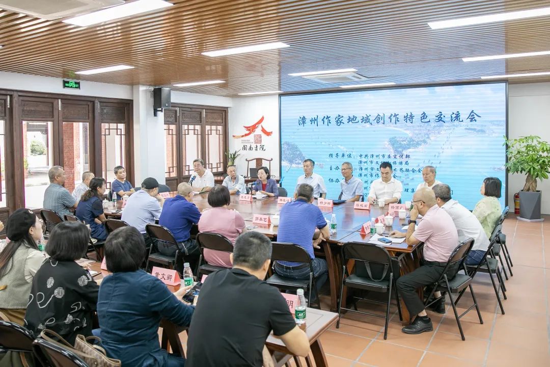 漳州作家地域创作特色交流会近日在漳州闽南书院举办。省闽南文化研究会会长林晓峰、省作协名誉主席杨少衡、漳州市委宣传部副部长陈惠贞、漳州市文联副主席陈晓君等,以及市县作家代表参加了交流会。